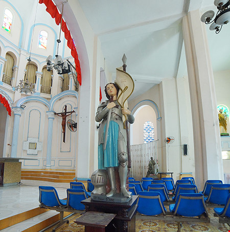 Không có nhiều Nhà thờ ở Sài Gòn có Thánh bổn mạng là Thánh nữ. Giáo hội Công giáo có khá nhiều Thánh nữ nhưng việc cha Hướng chọn thánh Jeanne d’Arc (người Việt gọi là Thánh Gian-Đa) làm Thánh bổn mạng Nhà thờ có lẽ cũng không khó hiểu, vì Jeanne d’Arc là nữ Thánh anh hùng người Pháp, bà lãnh đạo quân Pháp chống lại sự xâm lược của người Anh trong cuộc chiến 100 năm giữa hai nước, bà bị bắt và hỏa thiêu vì bị kết tội dị giáo khi mới 19 tuổi.