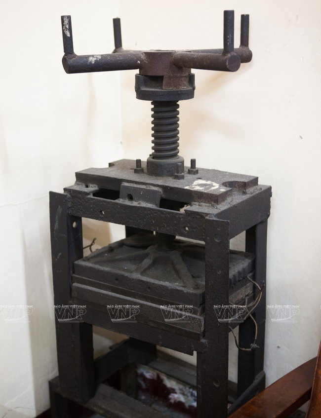 Dụng cụ ép đế giày cao su của ông Ba Mủ.